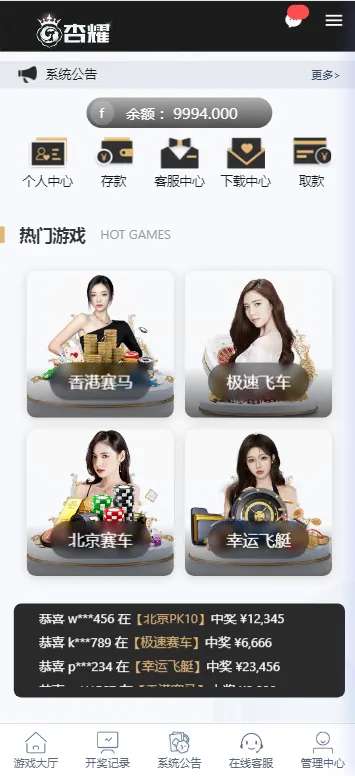 这四个游戏包括香港赛马、北京PK10、幸运飞艇和极速飞车。虽然我查看了全部内容,发现都是本地系统彩票,但你们可以接入第三方数据采集接口,或者自行开发以增加其他游戏。这个内核相对较旧,只支持php5.2+phpstudy集成环境。更多彩票源码