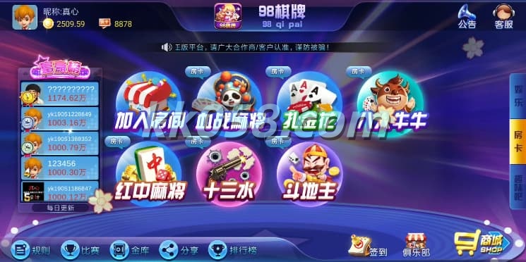 俱乐部功能:平台可能包含俱乐部功能,允许玩家创建或加入俱乐部,进行社交互动和组织比赛。 更多棋牌电玩
