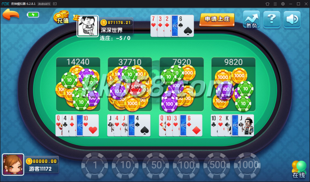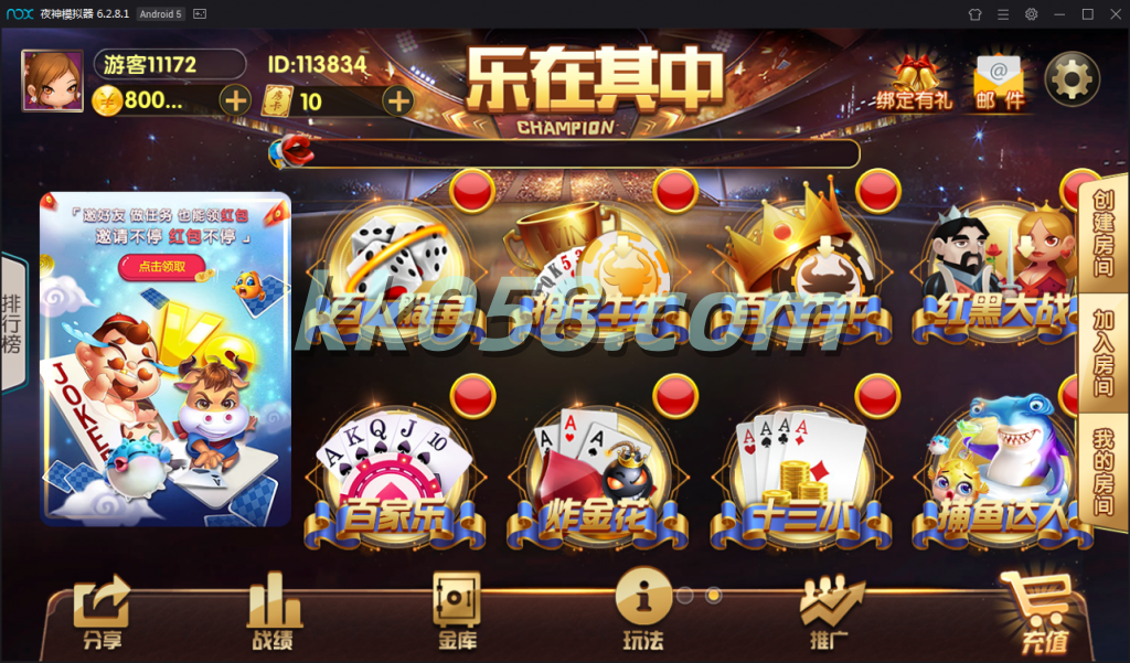 内含游戏:百人骰宝,抢庄牛牛,百人牛牛,红黑大战,百家乐,炸金花,十三水,捕鱼达人,广东麻将,三公,飞禽走兽,奔驰宝马,推筒子,红中麻将,斗地主 更多棋牌电玩