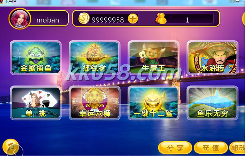 内置15款游戏 捕鱼 百人 棋牌等。渔乐吧包括有:金蟾捕鱼、彩金单挑、幸运六狮、百人牛牛、渔乐圈、摇钱树、牛魔王、鱼乐无穷等多款游戏。