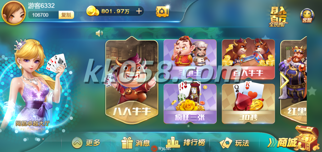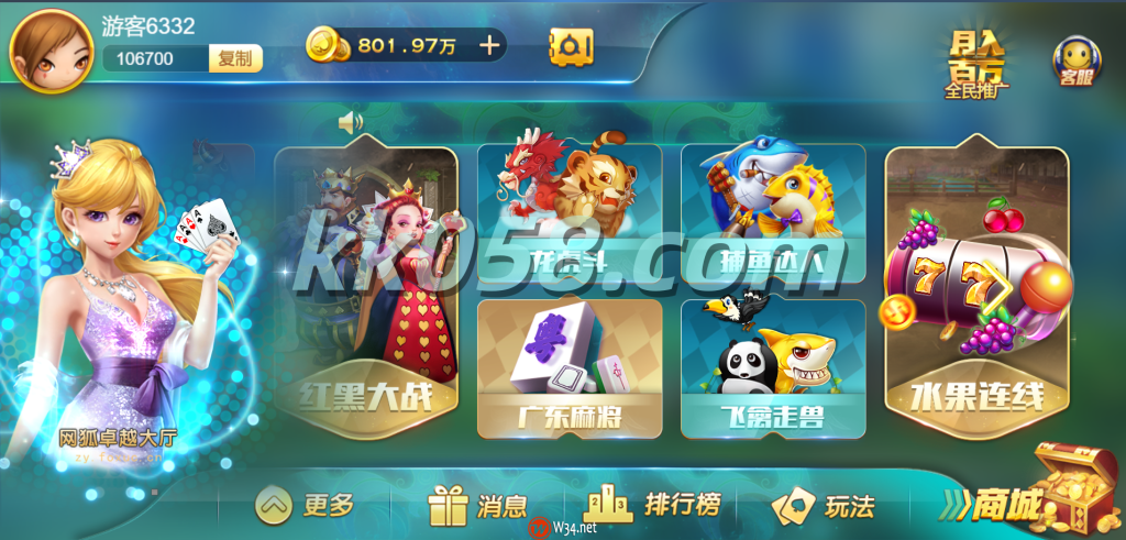 电玩:捕鱼达人、飞禽走兽、水果连线、水果玛丽、棋牌:八人牛牛、斗地主、狂三张、百人牛牛、30秒、红黑大战、龙虎斗、百人骰宝、、百人德州、牌九、百人二八杠、港式五张、三公、推筒子、十三水