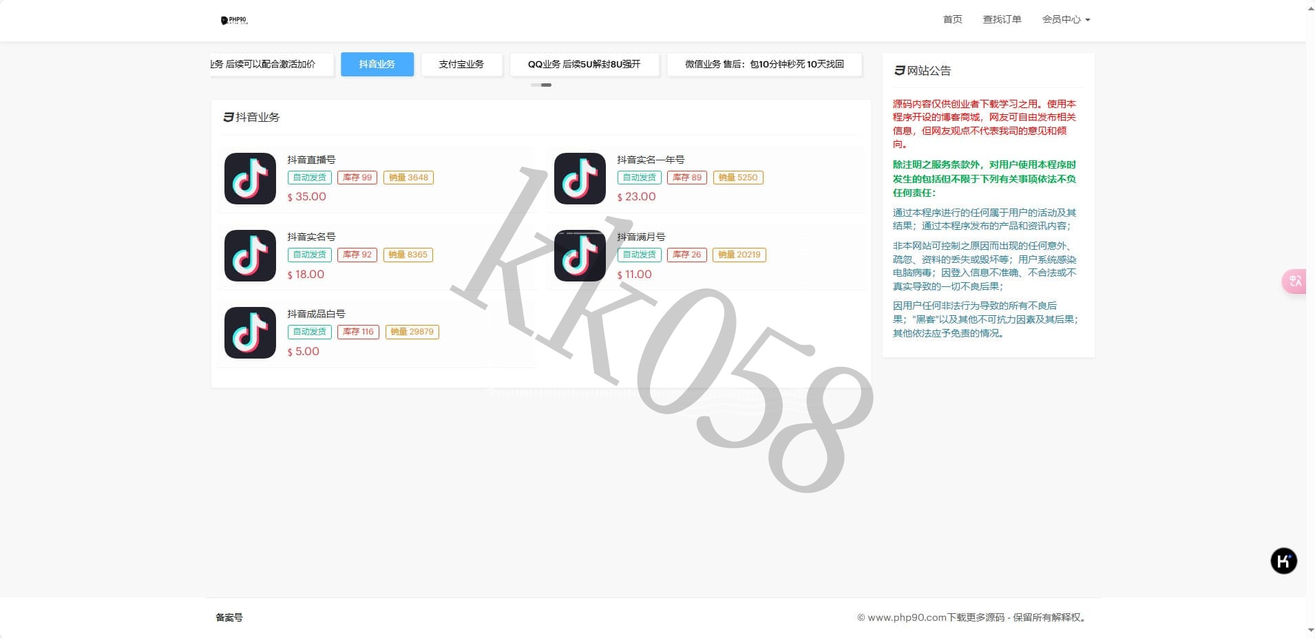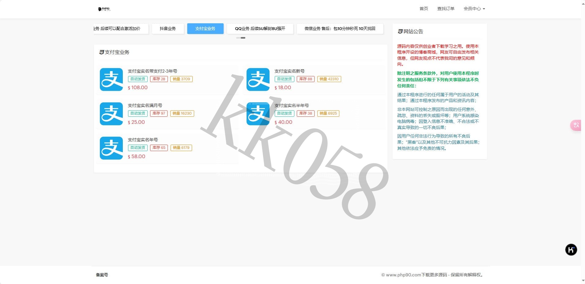- 支持多种虚拟商品的发放和销售,包括盗U、秒U等虚拟账号。
